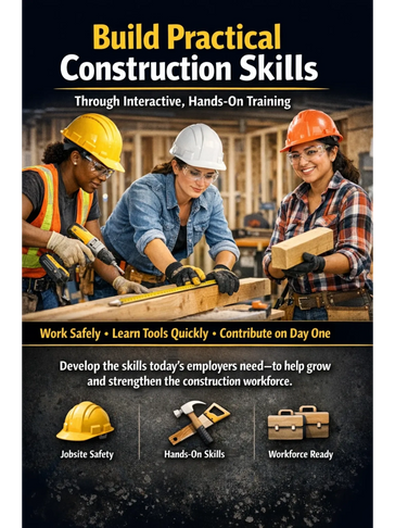 Build practical construction skills through interactive, hands-on training that strengthens your ability to work safely, learn tools quickly, and contribute on day one—helping meet what today’s employers are looking for as they grow and strengthen the construction workforce.